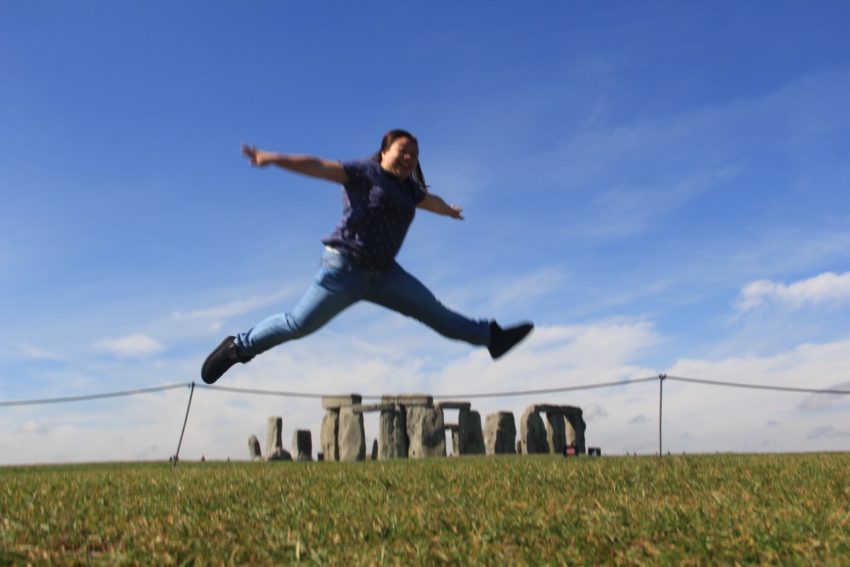 IMG_3276 Published January 31, 2015 at 5184 × 3456 in Jumping Over The Stonehenge ← Previous Next → I was trying to look like I was jumping over The Stonehenge. Wish Jolene managed to capture a clear shot but I guess this will have to do.
