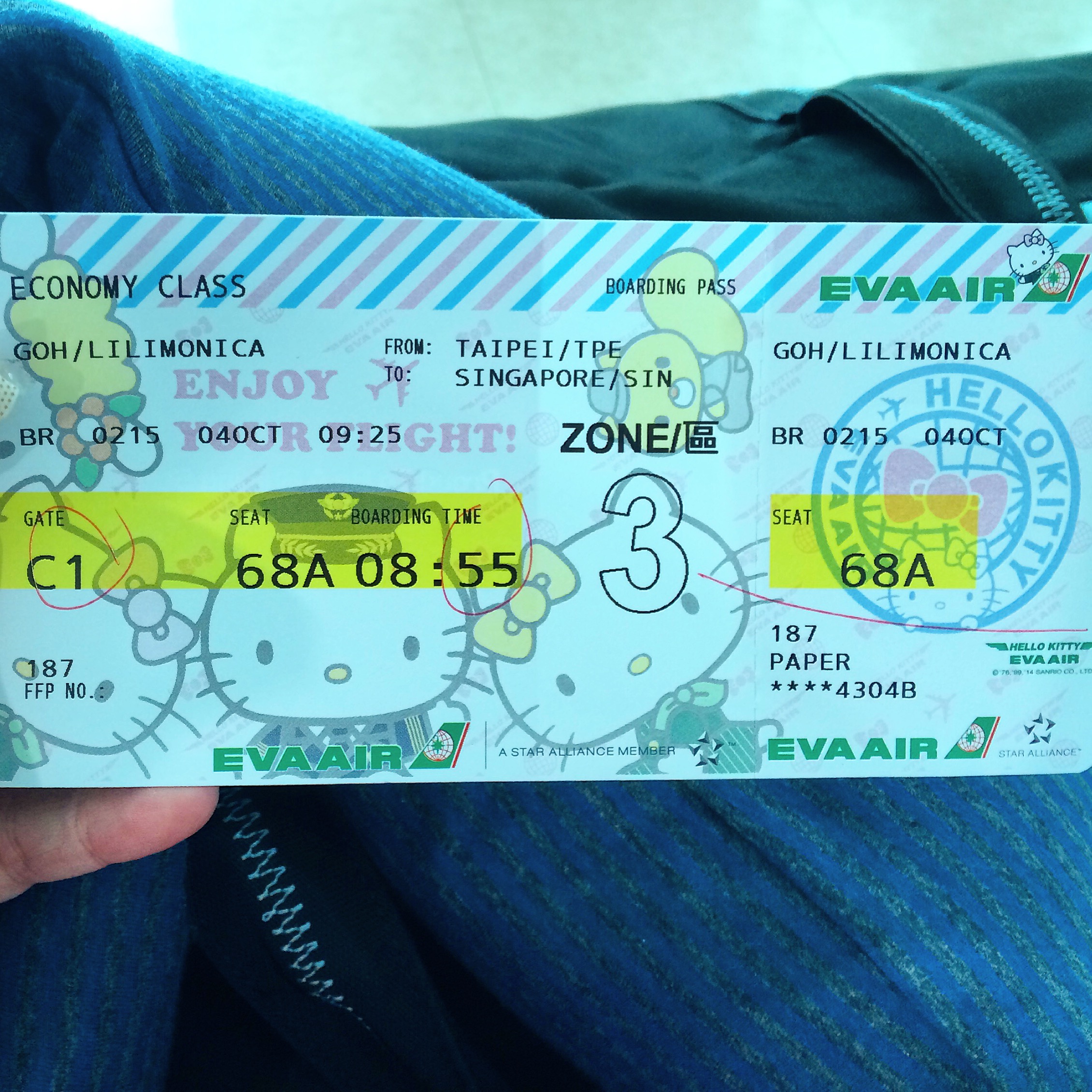 The girls then approached the Information Counter for help and found out that all the later flights from Hong Kong to Singapore were fully booked anyway. So even if we got on the 0850 flight we would still be stuck at the airport! Thankfully, the lady they approached, Ms Apple, was really helpful and managed to get us back home to Singapore by putting us on a direct flight from Taipei on another airline – EVA Air.